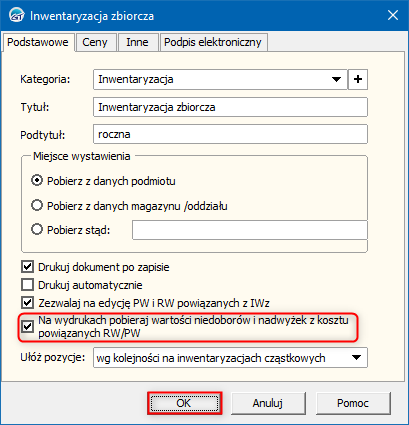 Subiekt GT – Jak ustawić, żeby na wydrukach inwentaryzacji zbiorczej wartości niedoborów i nadwyżek były pobierane z powiązanych dokumentów PW i RW?