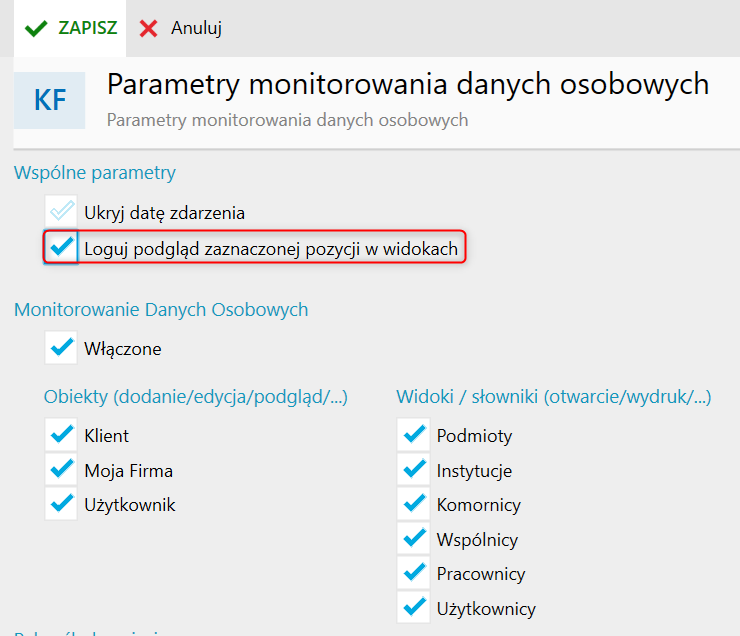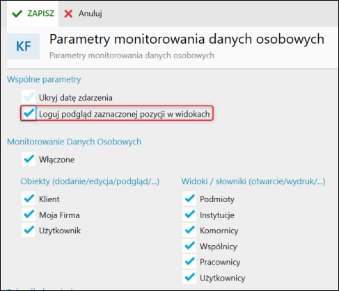 InsERT nexo – Jak włączyć logowanie podglądu zaznaczonej pozycji w widokach w monitorowaniu danych osobowych?