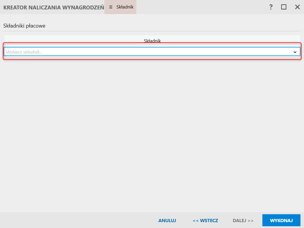 6. Nie wybierać żadnego składnika płacowego i przejść Dalej.