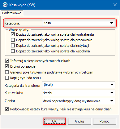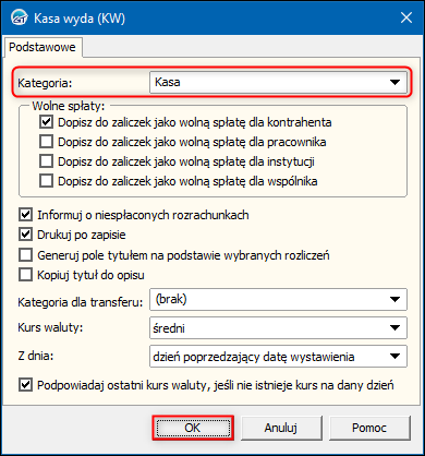 2. W oknie, które się wyświetli ustawić domyślną Kategorię. Zmiany zapisać przyciskiem OK.