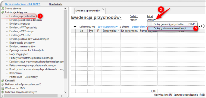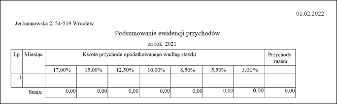 Rezultatem powyższych czynności będzie wydruk podsumowania ewidencji przychodów za rok.