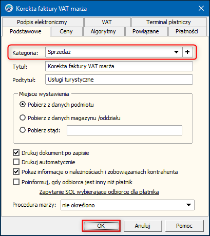 Subiekt GT – Jak ustawić domyślną kategorię korekty faktury VAT marża?