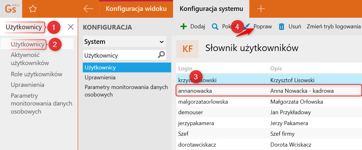 W tym miejscu warto zwrócić uwagę na możliwość skorzystania z modułu Poczty wbudowanym w program Gestor nexo lub klienta poczty zainstalowanym na tym samym komputerze. Zmianę wyboru klienta poczty, z którego ma korzystać aktualnie zalogowany użytkownik, można dokonać z konfiguracji Użytkownicy, poprzez otwarcie konkretnego użytkownika i wybór opcji Domyślny klient poczty na zakładce Podstawowe.