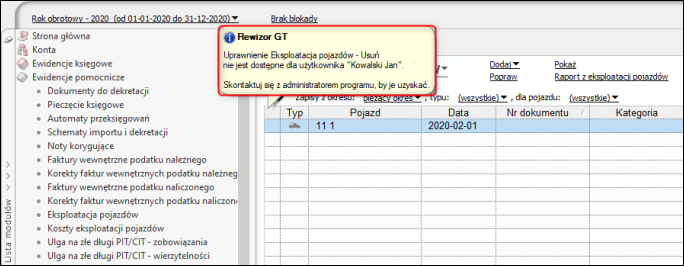 Rewizor GT – Jak zablokować użytkownikowi możliwość usuwania zapisów eksploatacji pojazdów?