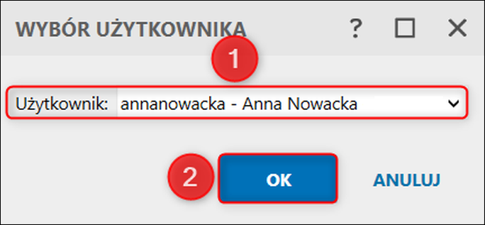 2. Wskazać odpowiedniego Użytkownika i kliknąć OK.