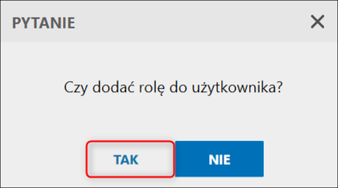 Podczas zapisu roli można przypisać ją użytkownikowi, na podstawie którego powstała rola. Aby to zrobić, należy kliknąć Tak.