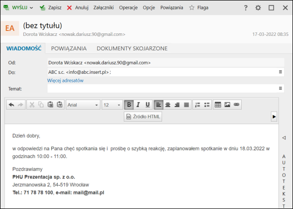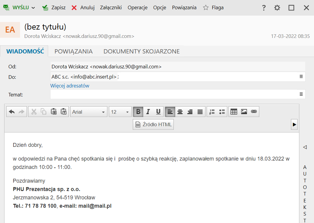Agencja nieruchomości – Wysyłka wiadomości e-mail do klienta i przygotowanie przed spotkaniem.