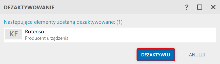 2. Zatwierdzić wykonanie operacji przyciskiem Dezaktywuj.​