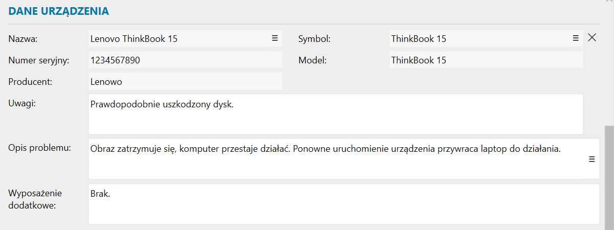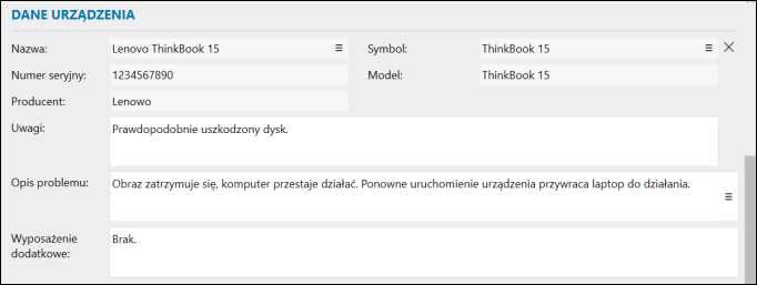 Informacje o kolejnym kroku można znaleźć w temacie e-Pomocy technicznej Serwis komputerowy – Dodawanie asortymentu, który zostanie zużyty w zleceniu serwisowym