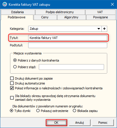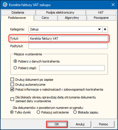 Subiekt GT – Jak ustawić domyślny tytuł korekty faktury VAT zakupu?