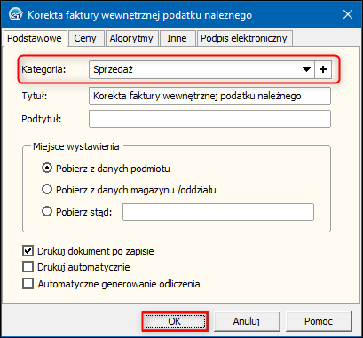 Subiekt GT – Jak ustawić domyślną kategorię korekty faktury wewnętrznej podatku należnego?