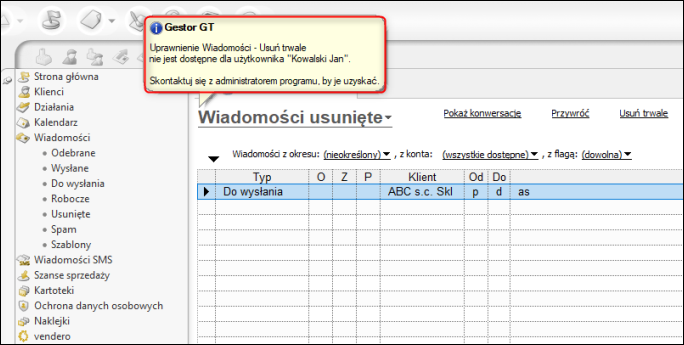 Gestor GT – Jak zablokować użytkownikowi możliwość trwałego usuwania wiadomości?