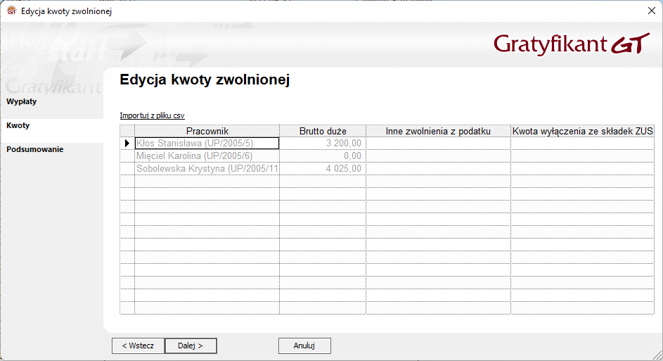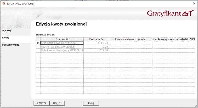 Od wersji 1.71 HF2 InsERT GT dodano kreator umożliwiający zbiorcze wyłączenie części kwoty wynagrodzenia z podstaw opodatkowania i składek ZUS. Aby wykorzystać kreator, należy:
