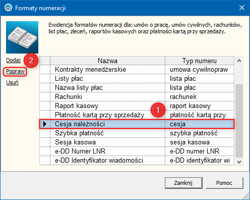 2 W oknie, które się wyświetli zaznaczyć Cesja należności i kliknąć Popraw