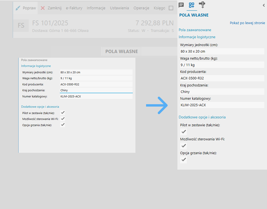 [PRO] W ramach laboratorium udostępniono możliwość prezentowania pól własnych w sekcji szybkiego dostępu dla pól własnych dokumentów handlowych, asortymentu oraz obiektów z Gestora.