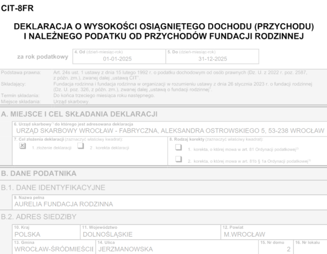 CIT-8FRDodano obsługę deklaracji CIT-8FR dotycząca rozliczenia fundacji rodzinnych.