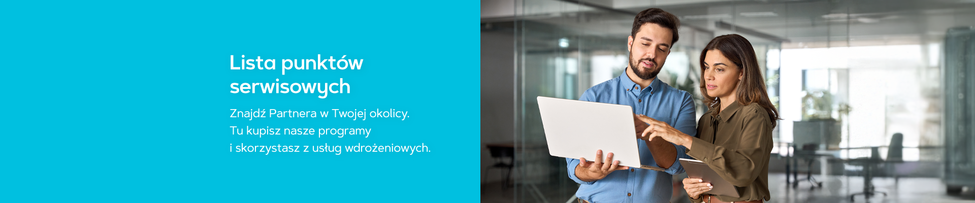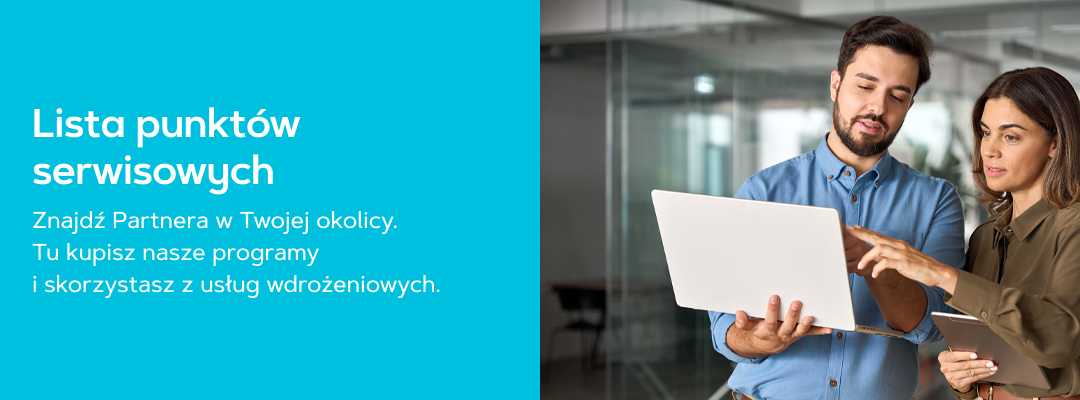 Potrzebujesz wsparcia technicznego lub pomocy we wdrożeniu programu? Wybierz województwo i miejscowość, aby znaleźć Punkt Serwisowy znajdujący się najbliżej Twojej lokalizacji. Wskaż też linię produktów, którą jesteś zainteresowany.