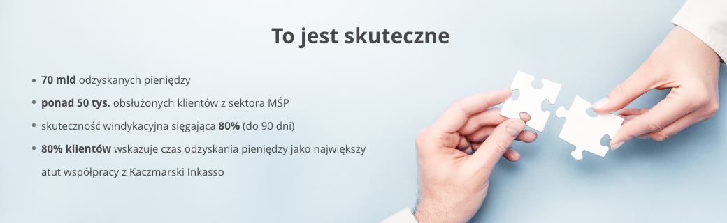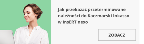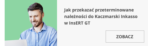 Twój klient zwleka z zapłatą za towar lub usługę? Nie czekaj, skorzystaj z opcji odzyskiwania pieniędzy w programie InsERT i zwiększ płynność finansową swojej firmy. Brak opłat na start - płacisz wyłącznie za sukces, a koszty związane z prowizją możesz odzyskać od kontrahenta. Odzyskiwanie pieniędzy w programach InsERT odbywa się za pośrednictwem firmy Kaczmarski Inkasso - lidera rynku w zakresie windykacji na zlecenie, gwarantującej szybką i polubowną finalizację sprawy, przy jednoczesnym zachowaniu dobrych relacji z kontrahentem. To rozwiązanie, które pozwala skupić się na właściwej działalności biznesowej oraz zyskać większą swobodę w planowaniu finansów. W ten sposób oszczędzisz zarówno pieniądze, jak i czas związany z prowadzeniem długotrwałych i niekoniecznie skutecznych procedur sądowych. |